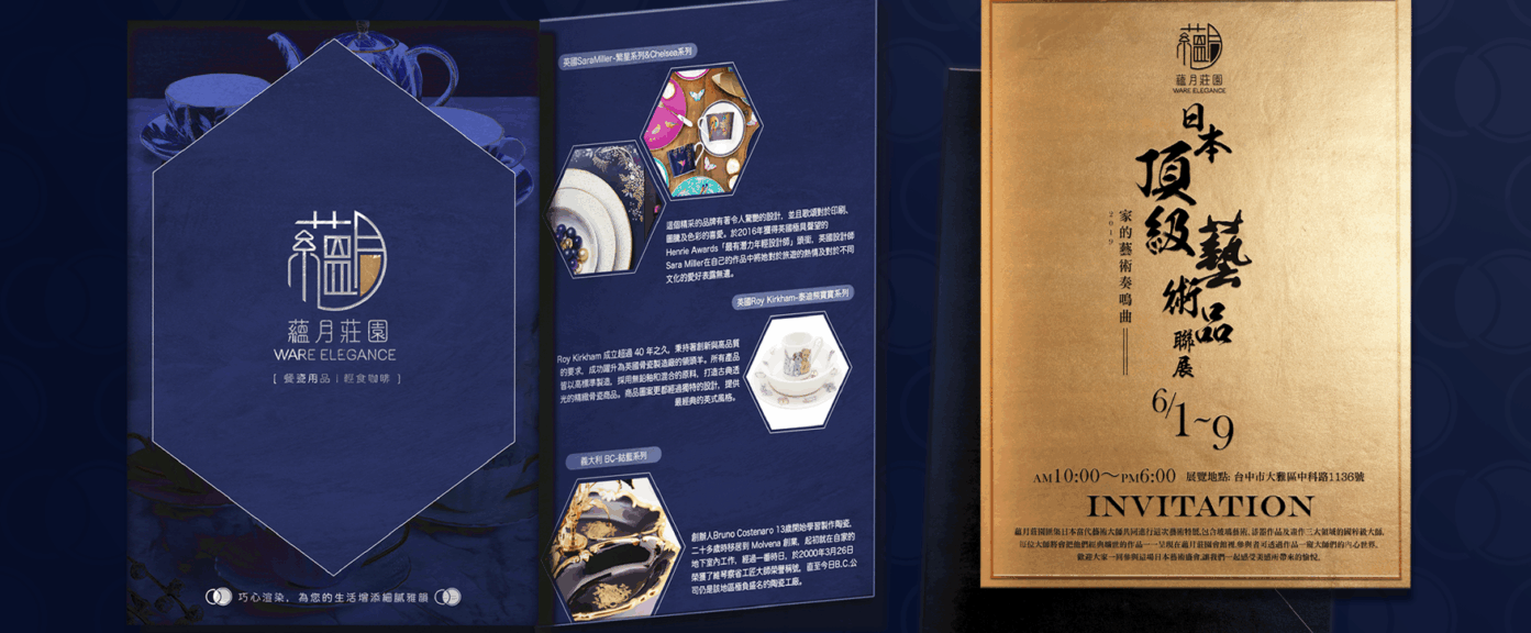 氣息,分析該產業內容與客戶背景後,我們決定以「品味」去設計「定位」,而瓷器商品本身即有與眾不同的特點──「藝術感」,所以從品牌規劃開始,就是個富有濃厚文藝氣息的品牌設計過程。